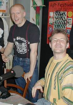 ![]() Patrick, new guitar player with the LMS, pointing his naked finger at a spaced off Lex. |